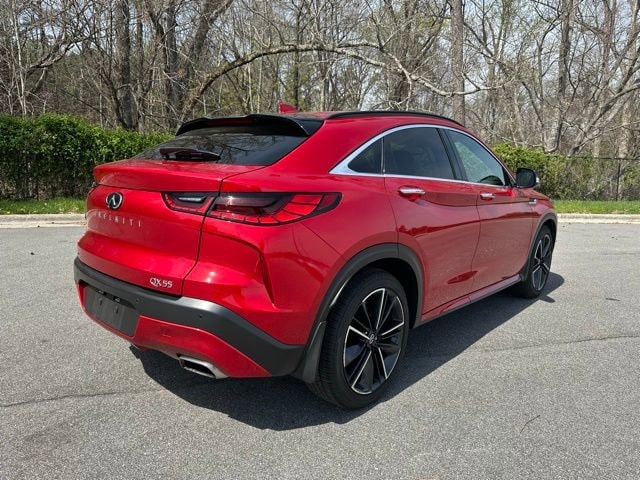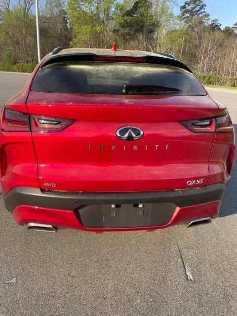 Clean CARFAX. CARFAX One-Owner. Dynamic Sunstone Red 2022 INFINITI QX55 SENSORY AWD CVT I4 1-OWNER, CLEAN CARFAX, LOCAL TRADE IN, BACK UP CAMERA, LEATHER, HEATED SEATS, SUNROOF, ALL WHEEL DRIVE, SMART KEY W PUSH BUTTON START, PRE-COLLISION SYSTEM W PEDESTRIAN DETECTION, DYNAMIC RADAR CRUISE CONTROL, LANE DEPARTURE ALERT W STEERING ASSIST, BLIND SPOT MONITOR W REAR CROSS TRAFFIC ALERT, POWER LIFTGATE, MEMORY SEAT, HOMELINK GARAGE DOOR TRANSMITTER, FRONT & REAR PARKING SENSORS, HEAD-UP DISPLAY, HEATED LEATHER STEERING WHEEL, 1-OWNER, CLEAN CARFAX, MUST SEE!, 16 Speakers, ABS brakes, Auto High-beam Headlights, Auto tilt-away steering wheel, Auto-dimming Rear-View mirror, Automatic temperature control, Climate Controlled Front Bucket Seats, Electronic Stability Control, Four wheel independent suspension, Front dual zone A/C, Garage door transmitter: HomeLink, Heads-Up Display, Heated front seats, Heated steering wheel, Illuminated entry, Illuminated Kick Plates, Leather Shift Knob, Lighting Package, Memory seat, Navigation system: INFINITI InTouch Navigation, Power Liftgate, Power moonroof, Power passenger seat, Radio: Bose Performance Series Premium Audio, Rain sensing wipers, Split folding rear seat, Steering wheel memory, Steering wheel mounted audio controls, Traction control, Ventilated front seats, Welcome Lighting, Wheels: 20" x 8.5" Machine Finish Aluminum Alloy.